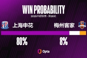 申花在中超7次对阵梅州客家都获胜 是对单一对手并列最长连胜纪录