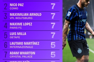 五大联赛创造重大机会榜:迪马尔科11次居首,帕斯等4人均7次次之