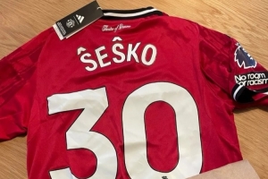 球迷Jaka在社媒上表示,自己从曼联官方在线商店购买了舍什科的30号球衣,发现舍什科姓氏中的变音符号被颠倒,两个向下的箭头朝上。