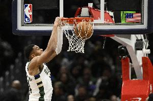 真舒展!字母哥在训练中轻松完成大风车扣篮