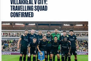 曼城公布客战黄潜欧冠名单:哈兰德领衔,罗德里、胡桑诺夫缺席