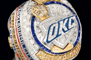 雷霆冠军戒指:14K白金与黄金打造 钻石镶嵌球员号码&内嵌副戒