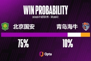 北京国安12次在中场主场对青岛海牛保持不败(10胜2平),9场零封