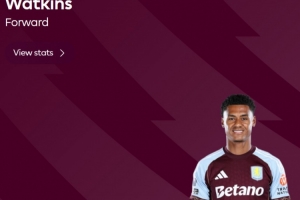 打进赛季首球,官方:沃特金斯当选维拉3-1富勒姆全场最佳