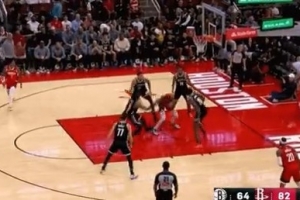 行云流水!申京四分卫长传 阿门接球助攻杜兰特1V4强起打进加罚