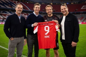 NFL传奇球星曼宁造访拜仁俱乐部,获赠凯恩的签名球衣