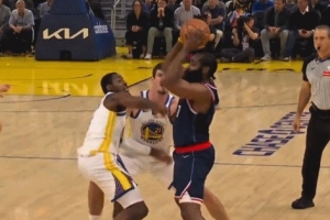 我冤枉!哈登强突库明加抛投打成2+1 库明加大喊&一脸不可思议