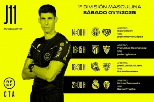西甲第11轮部分场次裁判安排: