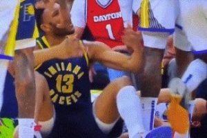 你抱怨啥?布拉德利撞翻库里被吹犯规送后者3+1 坐在地上喋喋不休