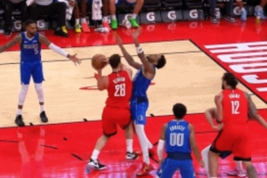 申京转身肘部打到华盛顿 裁判回放后没有升级 维持进攻犯规原判