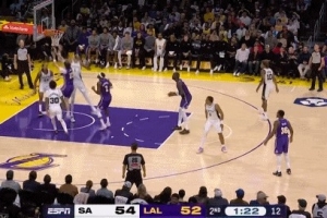 尚帕尼三分不中篮板混战出界&吹给马刺球权 湖人挑战成功拿回球权