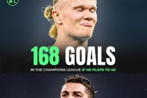 再踢10年超过C罗?AI预测:哈兰德40岁时欧冠总进球168粒