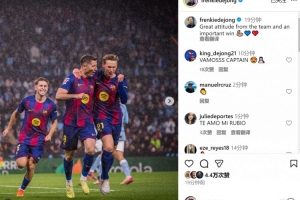 染红离场!德容社媒庆祝取胜:球队展现很棒的态度,收获重要胜利