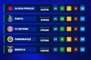 本赛季前10联赛仅5队不败:拜仁、费内巴切、波尔图、本菲卡在列