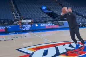 这不是P的!东契奇踩着中场Logo 三分三连中还都是空心