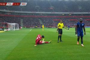体育资讯11月15日讯 波兰vs荷兰第74分钟,莱万在争抢时拉伤,直接坐下了,但暂时没有换人。