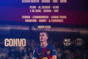 体育资讯10月01日讯 巴萨战巴黎大名单出炉!