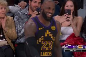 全员笑开花!詹姆斯助攻文森特压哨三分!