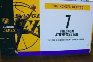 詹姆斯昨日单场只出手7次并列生涯第3低 最少是04年的5次
