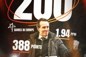 埃梅里完成执教生涯在欧战的200场里程碑,共取得115场胜利388分
