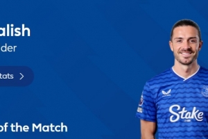 打进绝杀,英超官方:格拉利什当选埃弗顿2-1水晶宫全场最佳