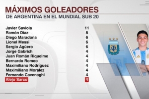体育资讯10月9日讯 ESPN统计了阿根廷球员在世青赛历史上的进球数量,并列出世青赛历史阿根廷球员射手榜,萨维奥拉11球断层居首,马拉多纳、梅西、阿圭罗6球,萨尔科本届赛事打进4球上榜。