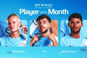 体育资讯10月31日讯曼城官方公布10月最佳球员候选名单,哈兰德、尼科-冈萨雷斯以及努内斯入围。哈兰德在十月份再次为曼城拿出精彩表现。他在对阵摩纳哥的比赛中梅开二度,随后在对阵布伦特福德的比赛中凭借一己