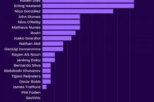 体育资讯10月31日讯数据机构squakwa统计了本赛季曼城队内的英超成功争顶情况,哈兰德和鲁本-迪亚斯并列最多。曼城队内英超空中对抗排行榜:哈兰德,22次鲁本-迪亚斯,22次尼科-冈萨雷斯,17次斯通