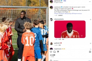 体育资讯10月31日讯拜仁在昨日的德国杯4-1逆转科隆,于帕梅卡诺首发在上半场表现不稳,但他在下半场调整过来、状态明显回升。于帕也在今日现身拜仁U13青训营和小球员们进行沟通交流,他也晒出自己的互动照,