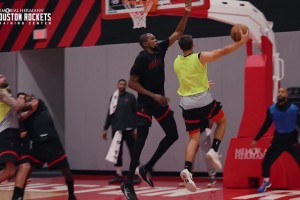东契奇投篮热身调戏训练师:来防我呀!然后调高弧度命中三分