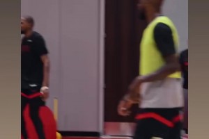 东契奇投篮热身调戏训练师:来防我呀!然后调高弧度命中三分