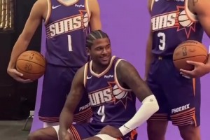 小子挺有地位啊!杰伦-格林坐在C位 布克和狄龙分列左右
