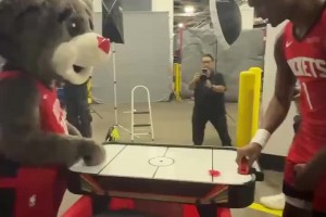 阿门跟火箭熊玩桌球游戏 凭借着出色的防守赢得比赛~