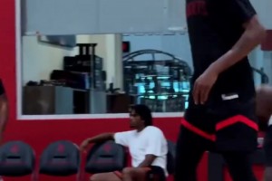 东契奇投篮热身调戏训练师:来防我呀!然后调高弧度命中三分
