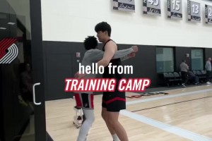 塞布尔上来就熊抱杨瀚森开拓者众将精神饱满迎接训练营