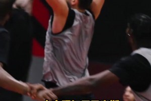 东契奇投篮热身调戏训练师:来防我呀!然后调高弧度命中三分