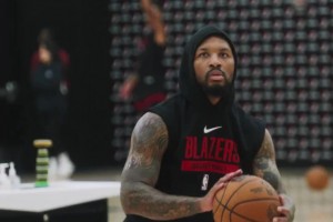 受了伤还是这么准!利拉德三分训练,弹无虚发!