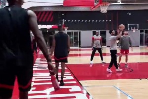 稳如老狗!杜兰特底角三分训练,连续4次命中