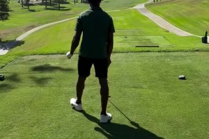 这水平如何哈?詹姆斯晒儿子布朗尼打高尔夫~
