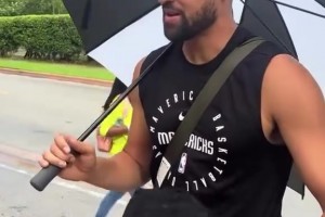 东契奇投篮热身调戏训练师:来防我呀!然后调高弧度命中三分