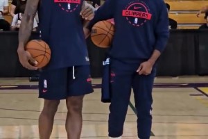保罗和莱昂纳德也不知道聊啥呢 这么严谨的表情