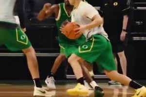 东契奇投篮热身调戏训练师:来防我呀!然后调高弧度命中三分