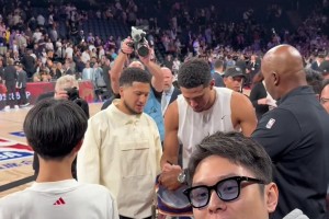 布克见到他也得一愣吧!“中国布克”昨日与布克本尊合影,还获亲签球衣