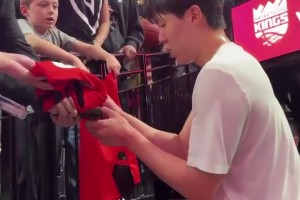 季前赛主场首秀!杨瀚森在球员通道给热情的球迷们签名~