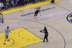 功夫不错!希尔德训练中来了个侧手翻,随后三分命中
