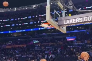 约基奇居然玩起了左手扣篮!估计是他今天跳最高的一次了!