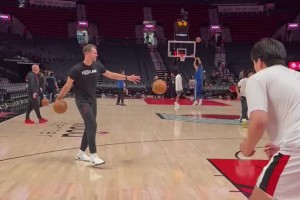 马刺冠军中锋亲自指点!助教斯普利特一对一指导杨瀚森赛前热身!