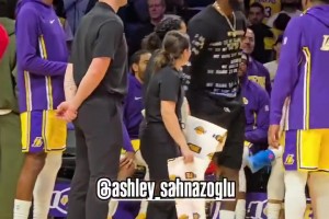 坐老詹身后的美女是谁?日本性感女星!身材犯规!还是库里球迷?