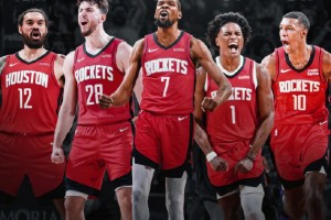 火箭这套首发身高历史第一!4个超过2米1的,2米03的阿门都只能算小矮人