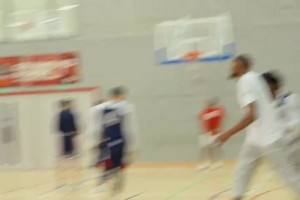 东契奇投篮热身调戏训练师:来防我呀!然后调高弧度命中三分